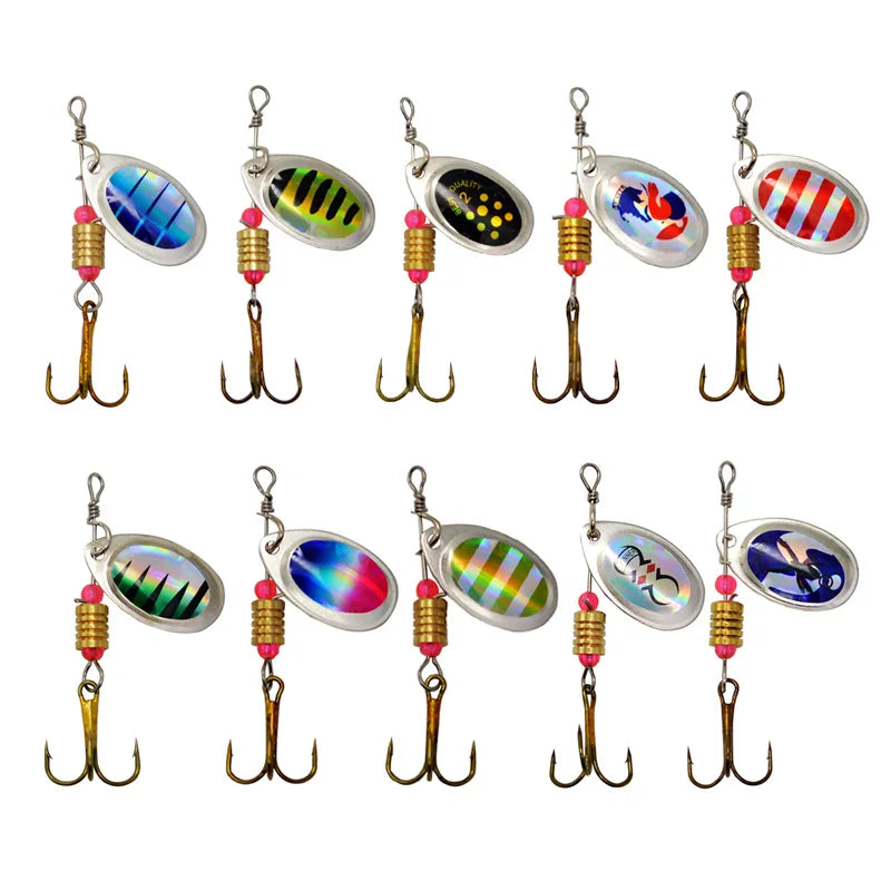 Fishing Lure Spinner Rotation Spoons 10 Pieces Lure Kit Compound Baits 3.5g Spin Bait Treble Hooks