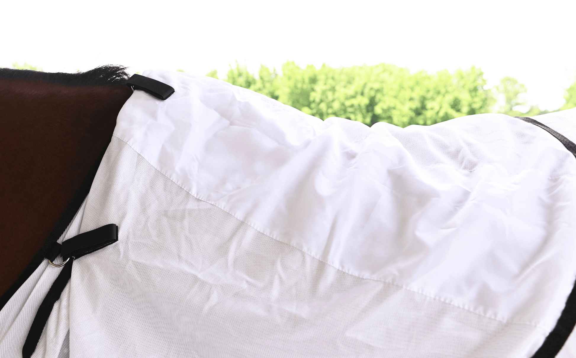 Crafted from lightweight, breathable material, the Cool-Mesh Fly Neck Cover allows for optimal air circulation, keeping your horse comfortable even in warmer conditions. The innovative reflective fabric not only aids in preventing sun bleach but also enhances visibility, ensuring your horse remains safe and protected from harmful UV rays.