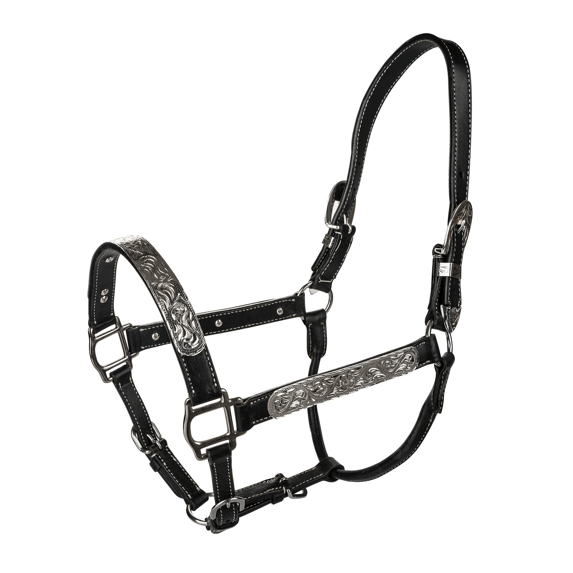 TABELLO 5-Way Adjustable Leather Halter with Silver Trim